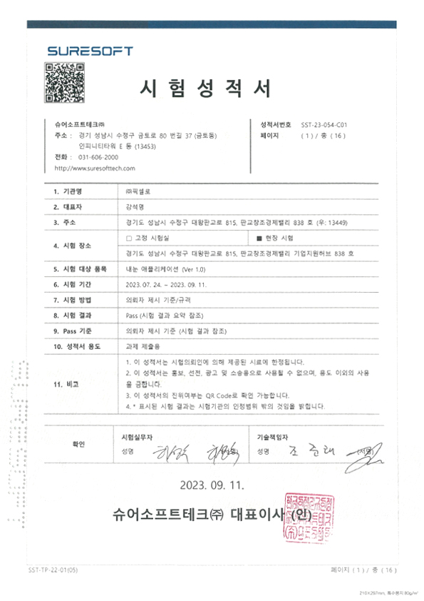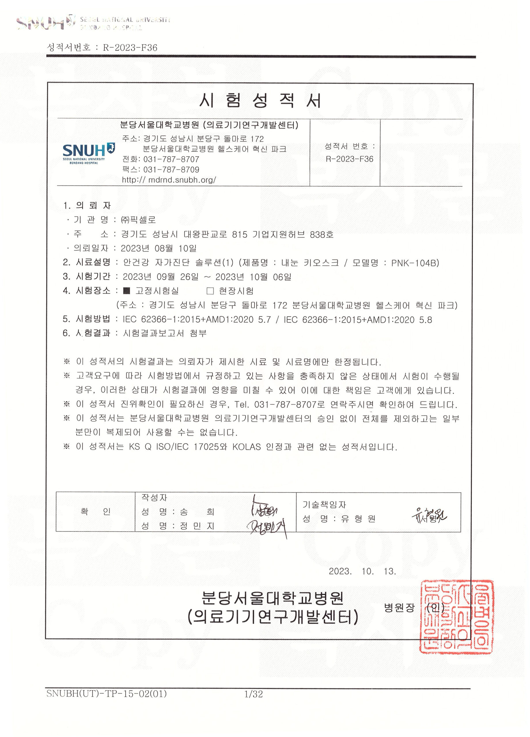 분당서울대학교병원 안건강 자가진단 솔루션 의료기기 사용적합성 시험 보고서