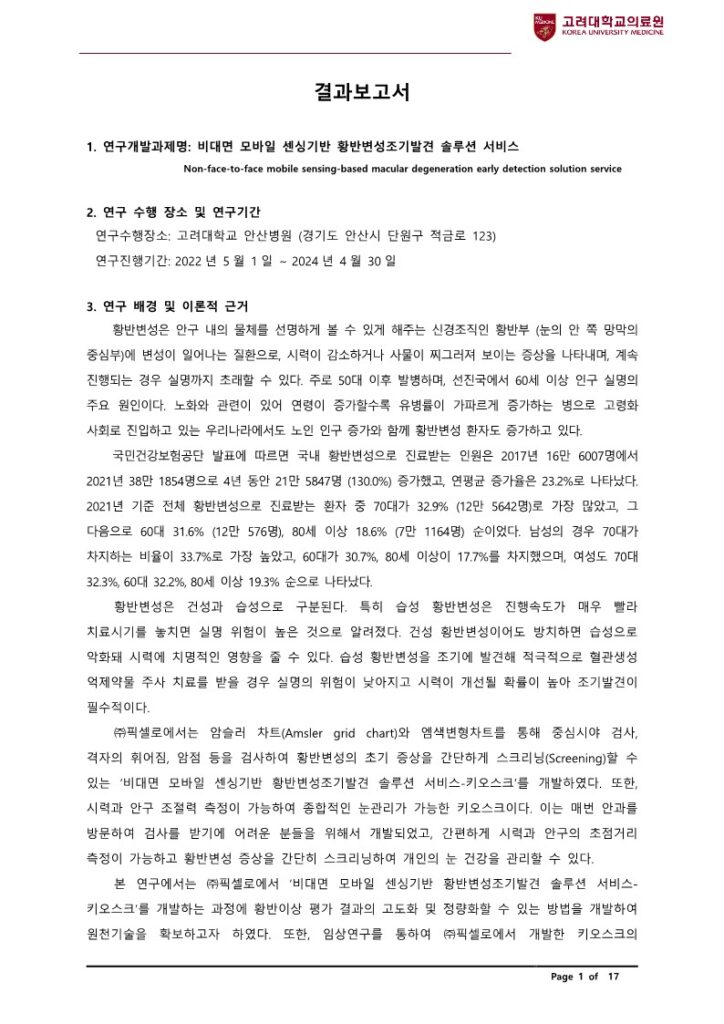 고려대학교안산병원 비대면 모바일 센싱기반 황반변성조기발견 솔루션 서비스 결과보고서